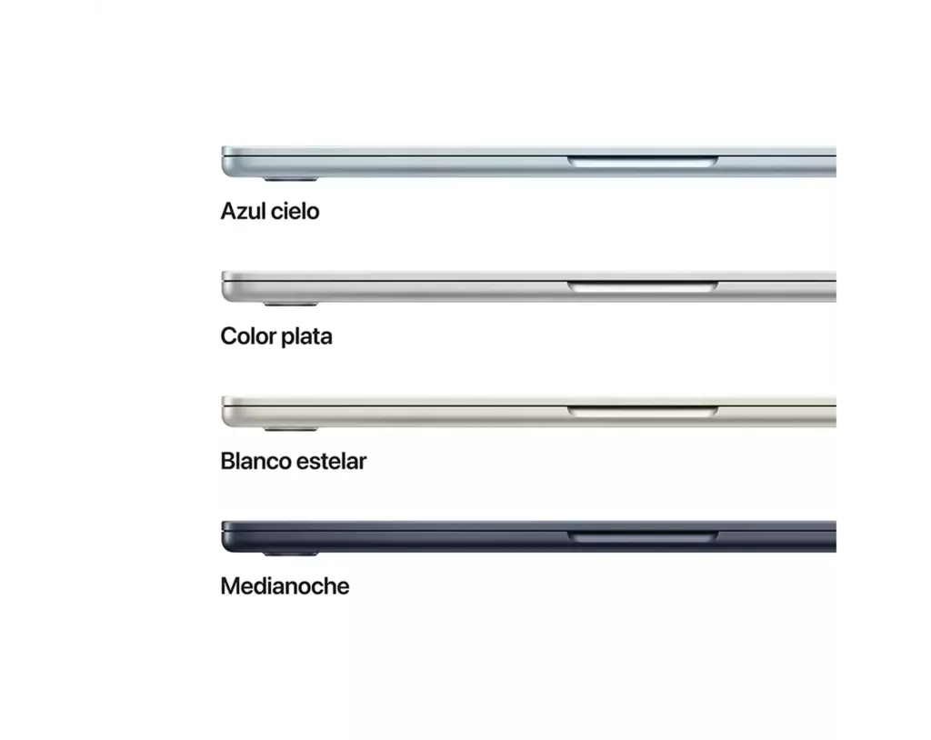 Rendimiento Avanzado: Equipado con el procesador M2, el MacBook Air ofrece una velocidad y eficiencia sin precedentes. Perfecto para tareas exigentes como la edición de video, programación y diseño gráfico.